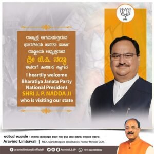 ಪಕ್ಷದ ಗೌರವಾನ್ವಿತ ಅಧ್ಯಕ್ಷರಾದ ಶ್ರೀ ಜೆ. ಪಿ. ನಡ್ಡಾಜೀ ಅವರಿಗೆ ಹಾರ್ದಿಕ ಸ್ವಾಗತ